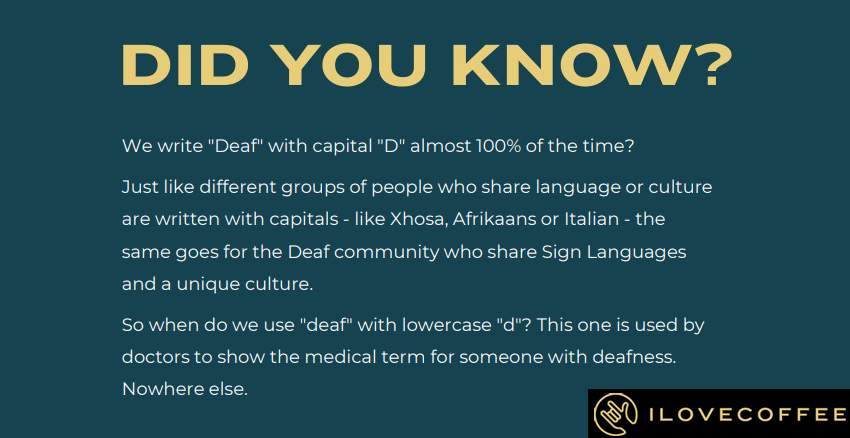 “Deafness isn’t a disability. It’s a culture and a community. This is I Love Coffee.” These are the first words you see upon opening I Love Coffee’s website and they sum up the ethos of the brand and its impact perfectly. Deafness is a culture and a community, and so is I Love Coffee.