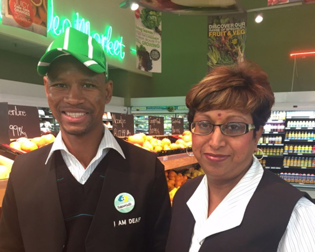 Growing up in the rural villiage of Nongoma, KwaZulu-Natal, Sbonelo Ndwandwe had nowhere to turn to when he got sick and lost his hearing. He also had no hope for employment. After completing the Shoprite Group’s Decade of the Deaf programme in partnership with eDeaf, he was employed by Checkers and now not only earns an income, but has a position he enjoys within the Fruit and Veg Department.