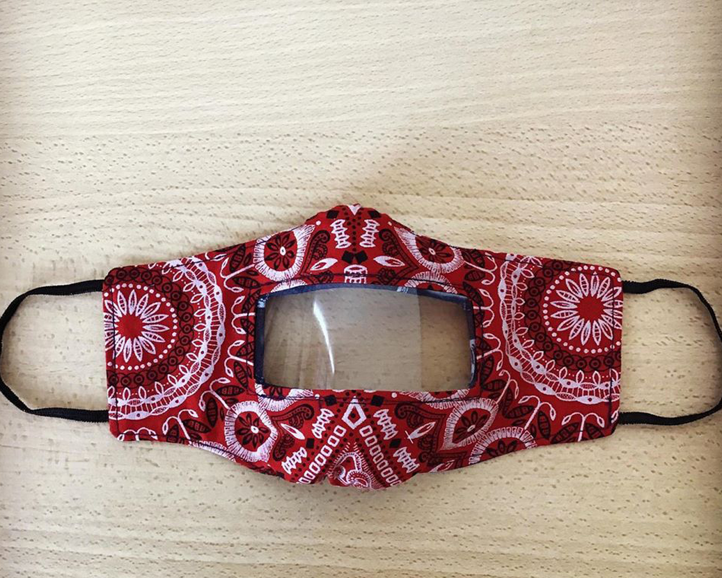 A mask with a see-through window makes it possible to communicate with people who are deaf or hard of hearing. These masks, made by a Cape Town occupational therapist, have a clear plastic window in front of the mouth, so that people who are hard of hearing or dead can lip read.